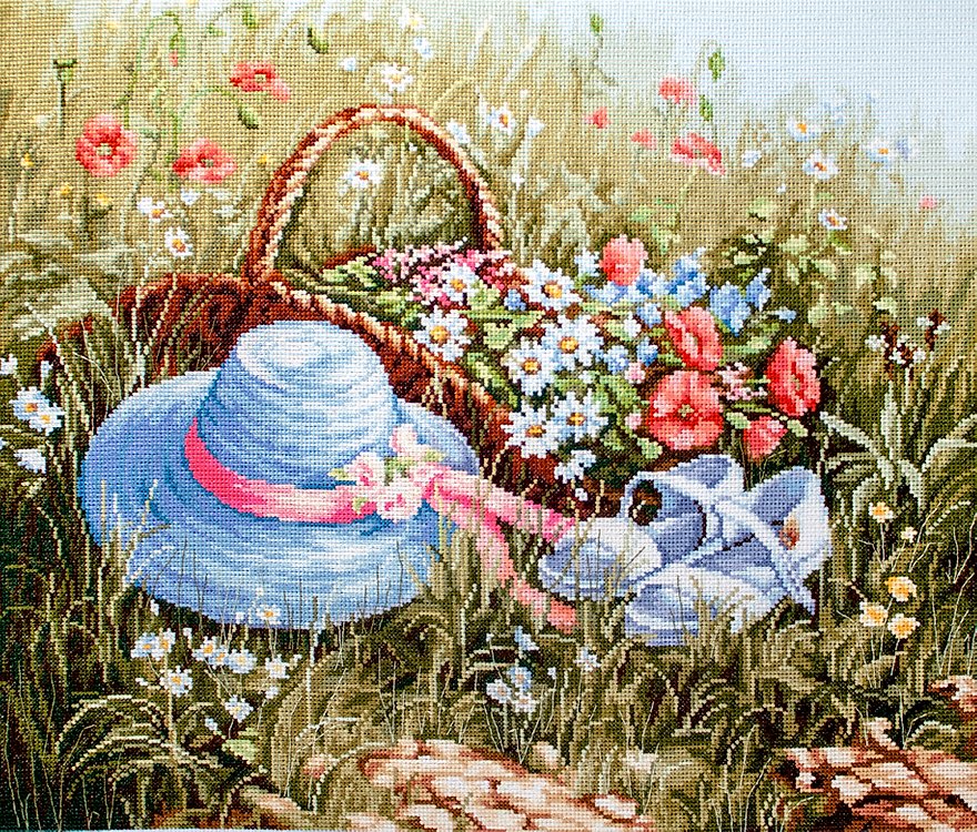 רקמה על בד גבינה - Meadow with poppies